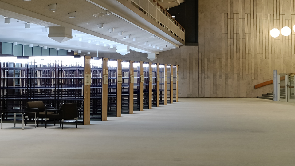 Starting around January 12 there may be noise disruption and temporary closures of workspaces and walkways for approximately one week. The so-called „East Foyer“ refers to the 1st floor—the same level as the cafeteria. Shelving units will be installed there to provide access to current periodical issues.