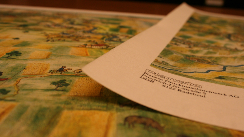 Die Kartenabteilung organisierte und koordinierte für uns die Digitalisierung der gewünschten Karten in der Stabi-eigenen Digitalisierungswerkstatt, wodurch wir in der Ausstellung eine Mischung aus eigenen Detailfotografien und Frontalansichten in Form hochwertiger Digitalisate präsentieren können.