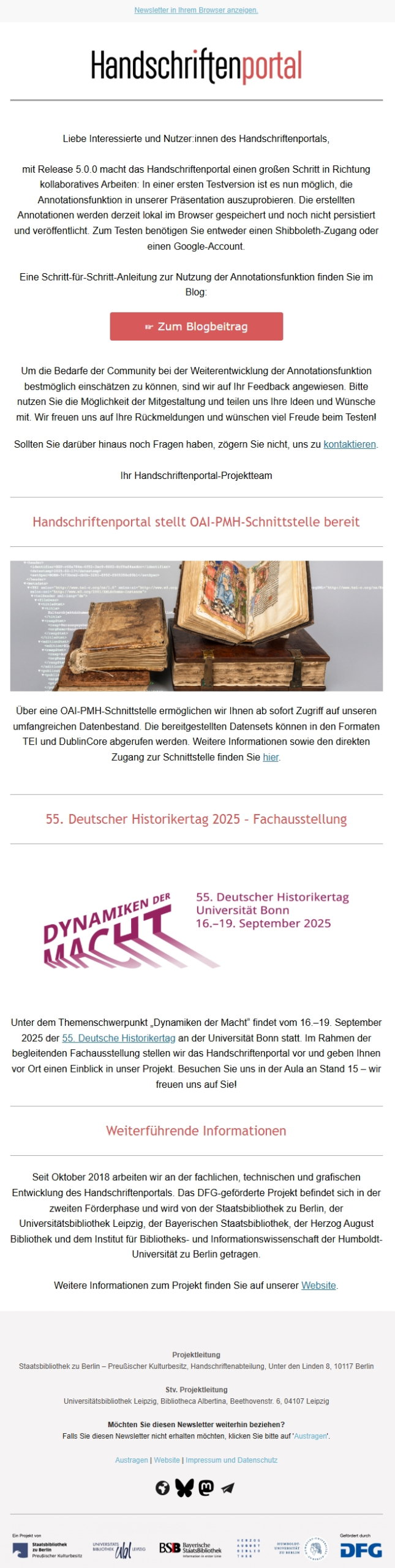 In Kürze erhalten Sie eine Bestätigungs-E-Mail, um sicherzustellen, dass es wirklich Sie sind, der bzw. die den Newsletter des Handschriftenportals abonnieren möchte.