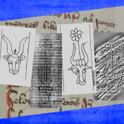 Wasserzeichen “Rose mit Buchstaben CR”, Thermografie-Aufnahme. – SBB-PK, Signatur: Mus.ms.autogr. Telemann, G. P. 62, p. 3. – Thermogramm: Hagen Immel, SBB-PK / Lizenz: CC BY-NC-SA