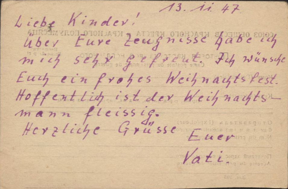 Der Vater kam in russische Gefangenschaft in ein Arbeitslager hinter dem Ural. Der Kontakt mit der Familie konnte über die Briefe gehalten werden.
