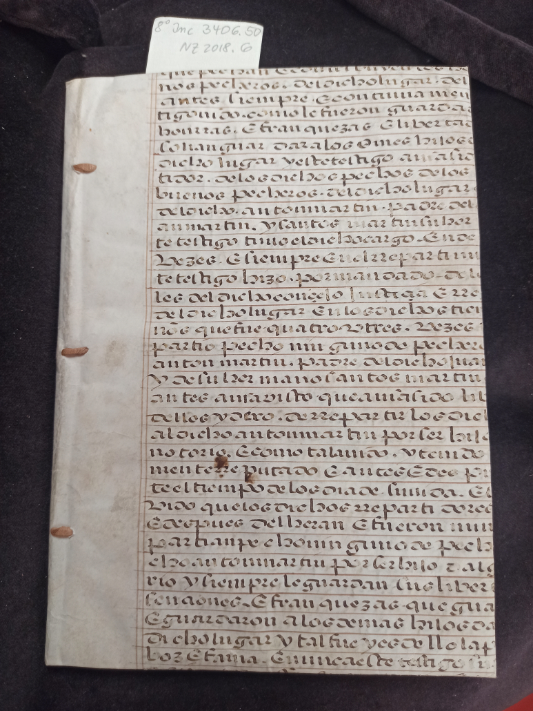 Binding made of parchment manuscript waste containing a late medieval Spanish legal text. Berlin, Staatsbibliothek, Inc 3406.50 = NZ 2018.6