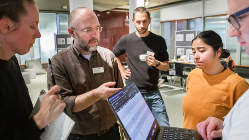 Projektbesprechung während des Hackathons „culture.explore(data)“ an der Staatsbibliothek zu Berlin (Foto: Hagen Immel)